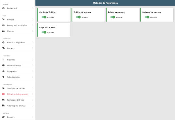 Liberdade é nosso lema! Deixamos sob seu controle se quer pagar taxas ou não, tendo liberdade de ligar/desligar as formas de pagamento online Cartão de Crédito Online e PIX Online. Essas funcionalidades geram uma pequena taxa de 7,9% pois são necessárias para garantir a segurança de não levar golpes e facilidade para seu cliente. Caso não queira usar, pode desabilitar esse pagamento continuar usando apenas os métodos tradicionais Cartão de Crédito/Débito na Entrega (precisa enviar a maquininha), Dinheiro (precisa se preocupar com o troco) ou Pagarmento na Retirada (demanda tempo operacional).